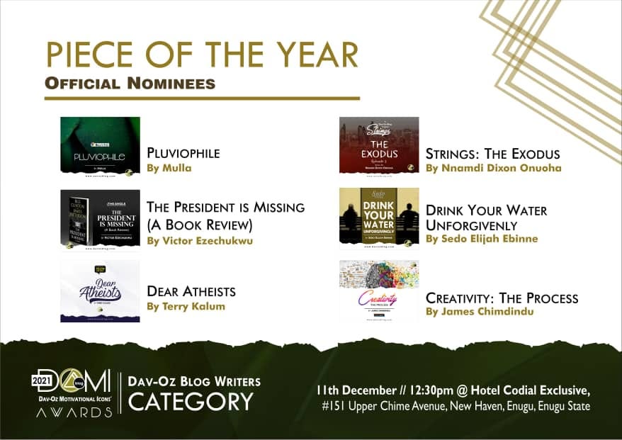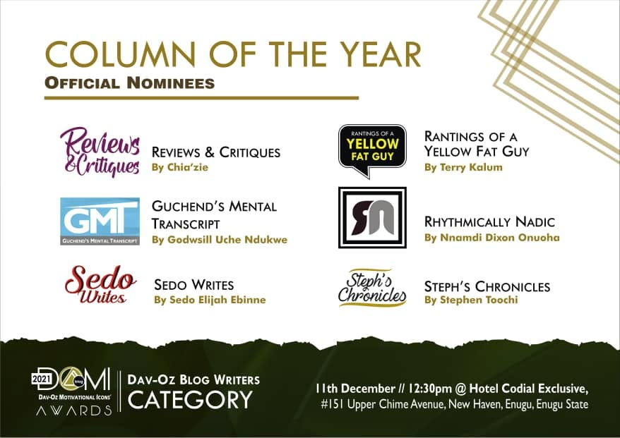 .Not only that my column, SedoWrites, was nominated for Column of the year.
